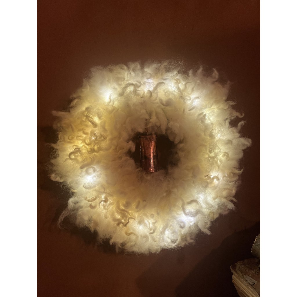 Slaměný korpus je ozdobený ovčí vlnou, měděným zvoncem a vybavený světýlky.